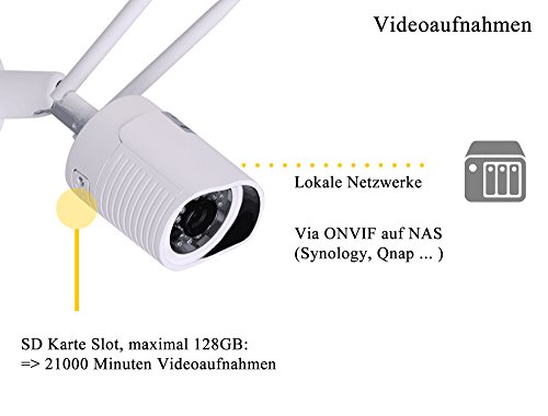 Unter Funktionsumfang haben wir bewertet welche Funktionen und Möglichkeiten die Überwachungskamera selbst bietet. Ob ein interner Speicher wie z.B. SD-Karte vorhanden ist, welche Schnittstellen (LAN/WLAN) die Kamera besitzt. Ob die Kamera Alarmmeldungen und Speichervorgänge per FTP oder E-Mail vornehmen kann. Ob eine IR-Beleuchtung integriert ist und wie groß die Reichweite ist. Ob Ton aufgezeichnet wird. Ob eine passende Smartphone-App bereitsteht und ob Zugriff über das Internet möglich ist. Ob gängige Protokolle wie P2P / ONVIF unterstützt werden.