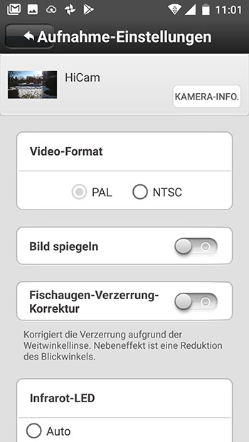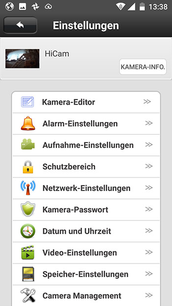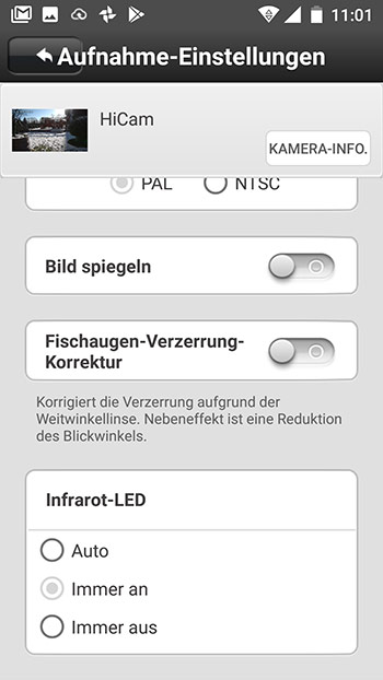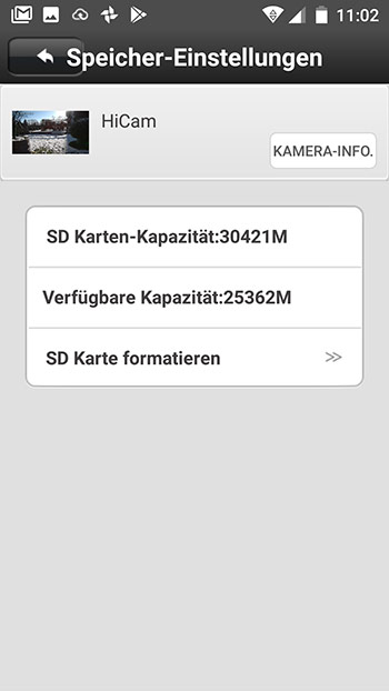 Hier einige Bilder von der HiKam Kamera Inbetriebnahme per App