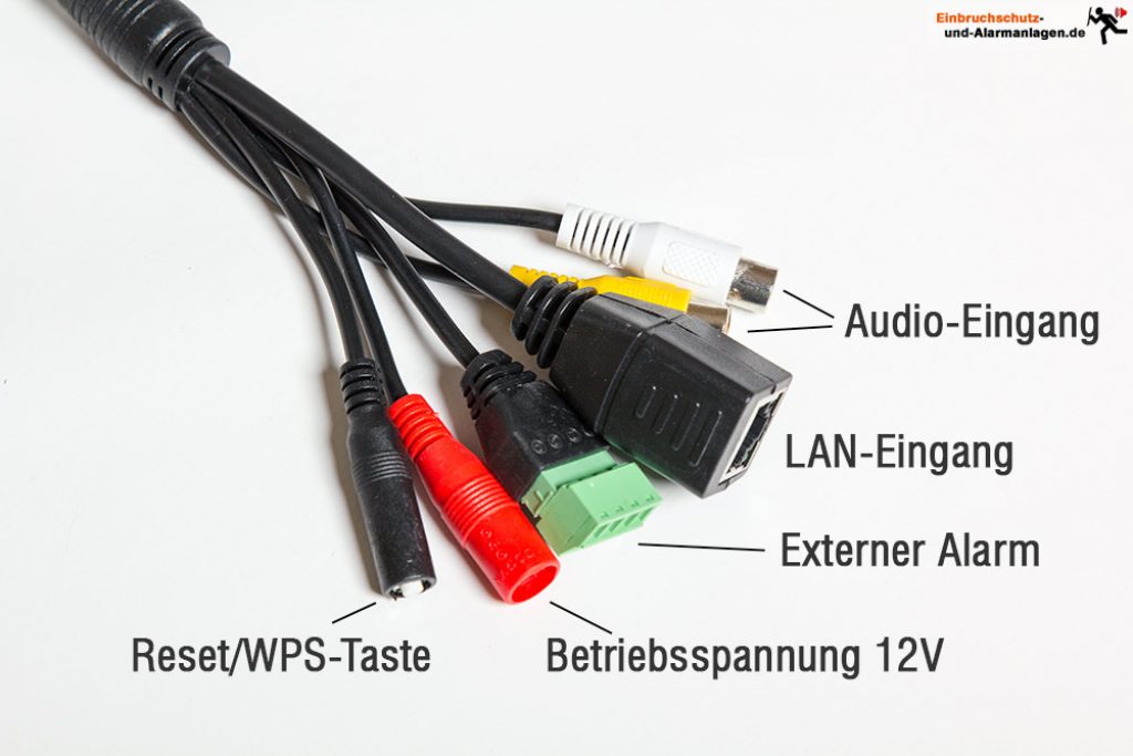 Weiterhin bietet die Kamera auch einen Audio-Eingang, an welchem man beispielsweise ein Mikrofon anschließen könnte. Dadurch würden die Videos nicht nur mit Ton aufgezeichnet, nein man könnte das Tonsignal ebenfalls als Alarmauslöser nutzen. Also bei lauten Geräuschen würden dann die Schnappschüsse oder Videoaufnahme gestartet. Letzteres ist vermutlich vornehmlich innerhalb von Räumen sinnvoll.