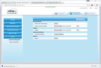Das Webinterface der upCam Tornado HD PRO gestaltet sich sehr übersichtlich, reagiert sehr flott und bietet zahlreiche Funktionen, ganz ähnlich wie wir es schon von getesteten Kameras wie der Instar IN-5907 oder z.B. der Lupusec HD LE201 her kennen. Es sind eigentlich alle Dinge vorhanden, die man heute von einer modernen Überwachungskamera erwartet.
