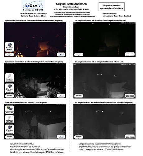 … Dank hochwertiger Sensoren und Infrarot-LEDs, die für den Betrachter nicht sichtbar arbeiten, liefert die upCam Hurricane HD PRO auch bei absoluter Dunkelheit detailreiche Aufnahmen. …