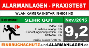 Uns hat die Kamera Instar-IN-6001HD* durchweg überzeugt, eigentlich haben wir nichts Gravierendes gefunden was wir hätten bemängeln können. Sie hat also zurecht die Bewertung „Sehr gut“ von uns erhalten. Gefallen hat uns vor allem die einfache Installation und die einfache Bedienung. Ein Blick in das Handbuch war eigentlich nie notwendig, was immer ein sehr gutes Zeichen für eine durchdachte Menüführung ist. Auch die vielfältigen Einstellungsmöglichkeiten, Unterstützung der gängigen Protokolle und die flexible Bewegungs- und Audioerkennung waren sehr gut. Ebenfalls sehr gut war die Bildqualität und deren Einstellungsmöglichkeiten.